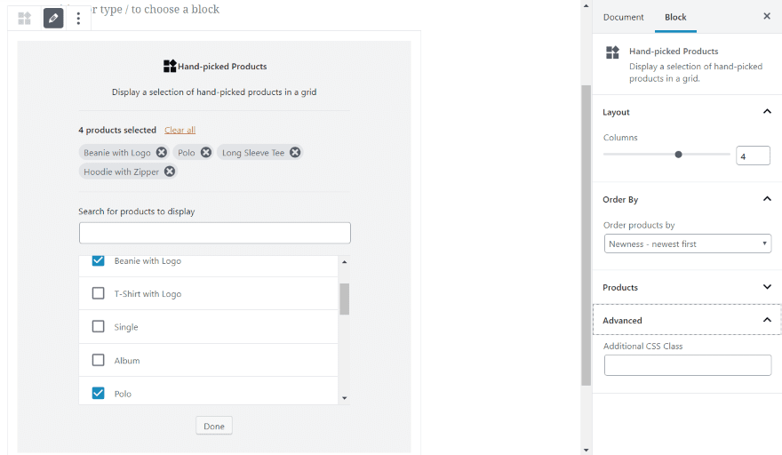 我希望看到更多的樣式功能(尤其是按鈕,文本和懸停疊加層)。我一直想像與Divi一樣進行自定義(我認為Divi寵壞了我)。它確實包括CSS類字段,這些字段將對那些使用CSS的字段有所幫助。即使沒有很多定制,我也喜歡使用這些塊。如果您想在您的Gutenberg頁面和帖子中包含WooCommerce產品,WooCommerce Blocks值得嘗試。